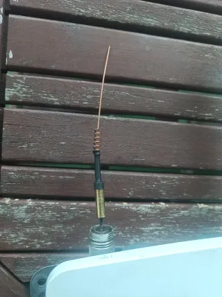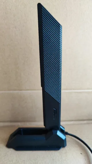 Amplificador de señal WiFi con conexión USB y antena. - Diseño compacto y fácil de instalar. - Casero, con peana de latón y mástil de aluminio. - Incluye cable USB.