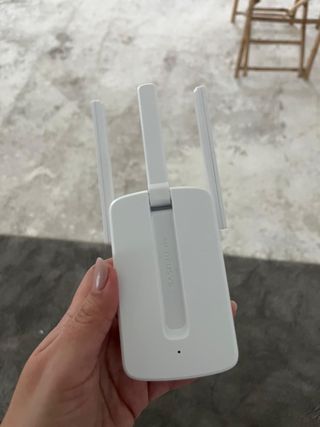 Este repetidor de señal WiFi te ayudará a extender la cobertura de tu red inalámbrica. Su diseño es compacto y moderno. - Tres antenas externas para una mejor señal. - Indicador LED de estado.