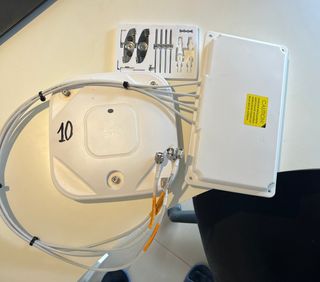 Vendo Kit WiFi Profesional de Largo Alcance. Ideal para naves, patios o conectar zonas lejanas. EL PACK (50€) INCLUYE: 1x Antena Panel Direccional Cisco (Alta Ganancia 6dBi). Envía señal concentrada y lejos. 1x AP Cisco AIR-SAP1602E (Autónomo/Dual Band). Funciona sin controladora. 1x Kit Soporte Articulado NUEVO en blíster con tornillería. Estado: Revisado y operativo. Listo para instalar. ⚠️ Tengo 8 unidades. Hago precio por lote. Envío protegido. - Punto de acceso Cisco. - Antena de panel. - Incluye cables de conexión.