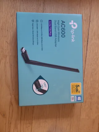 Adaptador WiFi de red inalámbrica TP-Link AC600. - Doble banda para mayor velocidad y alcance. - Antena de alta ganancia de 5dBi. - Compatible con Mac. Utilizado en dos ocasiones