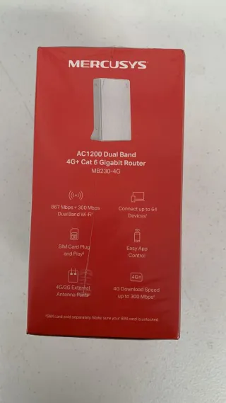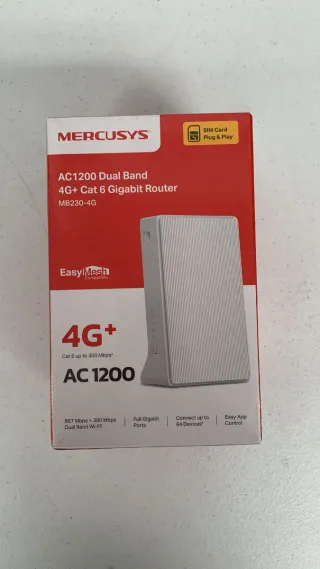 Sólo envío Totalmente nuevo Caja sin abrir No tiene garantía Mercusys MB230-4G, 4G+ Cat6 LTE Router, Banda Dual inalámbrica AC1200Mbps, Router WiFi con SIM, Puerto LAN/WAN, módem SIM 4G, sin configuración, Puertos de Antena externos