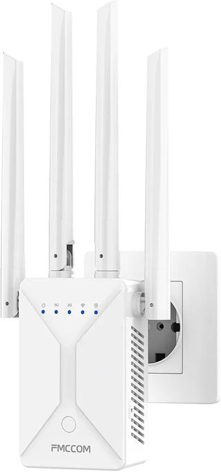 FMCCOM Potente Repetidor WiFi para Hogar Amplificador WiFi 1200Mbps 5GHz y 2.4GHz Doble Banda 4 Antenas Extensor WiFi Repetidor de Señal de Internet Inalámbrico, WPA2. - TOTALMENTE NUEVO - IDEAL PARA REGALO!!