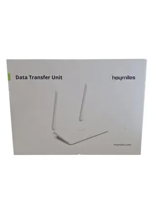 Unidad de transferencia de datos de la marca Hoymiles. Diseñada para la conexión y gestión de datos. - Color blanco. - Diseño moderno con dos antenas. - Indicadores LED en la parte frontal. - Sitio web del fabricante: hoymiles.com