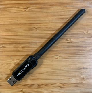 Antena WiFi USB de la marca Kozumi. Este dispositivo te permite conectarte a redes inalámbricas lejanas. Aumenta el radio de conexión y mejora la calidad de la señal. - Diseño compacto y portátil. - Conexión USB. - Antena externa para mejor recepción.