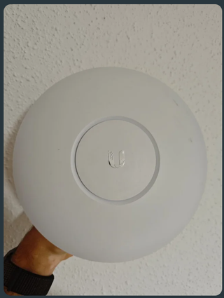 Antena WiFi de la marca Ubiquiti. (UAP clásico) Ubiquiti UniFi AP (UAP), primera generación. Características principales: Modelo: UAP - Alimentación: 24V PoE 0.5A - WiFi: 2.4 GHz (802.11b/g/n) - Velocidad máx.: 300 Mbps - Uso: Interior - Controlador: UniFi Network Controller