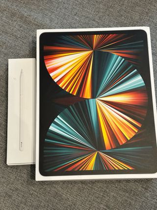 Se vende iPad Pro de 12.9 pulgadas de 5ª generación con chip M1 y 128GB de almacenamiento, junto con el Apple Pencil de segunda generacion. Ambos en perfectisimo estado, muy cuidados, el iPad siempre con funda y protector de pantalla Se entregan con sus cajas originales, cargador original y con una funda de regalo.