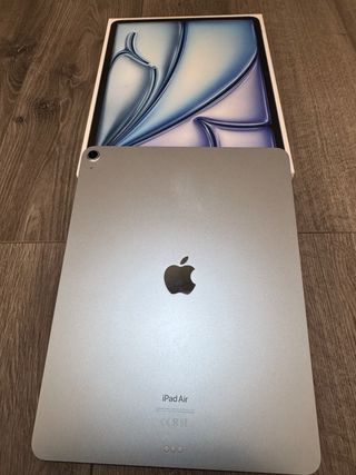 iPad Air con chip M2 de 13 pulgadas con 128 GB de almacenamiento. - Color azul cielo - Pantalla de 13 pulgadas. - Capacidad de 128 GB. - Batería al 100%. - 0 rasguños. - Protector de pantalla paperlike incorporado Lo vendo con un Pencil y una funda magnética.