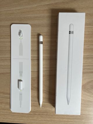 Lápiz Apple Pencil de primera generación en perfecto estado. Apenas se ha usado con recambio de punta y adaptador de carga. - Diseño elegante y minimalista. - Color blanco impoluto. - Punta precisa para escritura y dibujo.