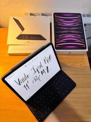 Pack profesional iPad Pro M2 11” 256GB + Pencil (2ª gen) + Smart Keyboard Folio | Como nuevo Vendo Apple iPad Pro con chip M2 y 256 GB de almacenamiento, perfecto para productividad, diseño, estudio o trabajo creativo. Incluye accesorios originales: ✍️ Apple Pencil (2ª generación) (ideal para dibujo, notas y edición) ⌨️ Smart Keyboard Apple Folio para iPad Pro 11 (teclado ligero y funcional) 📌 Estado: muy cuidado, siempre con funda y protector, funciona al 100%. 📌 Entrega: puedo entregar en mano o enviar con seguimiento.