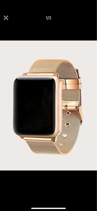 Correa SIN ESTRENAR de Apple Watch comprada en She in, de acero, color oro rosa. Vendo porque She in no admite devoluciones de este producto y me queda grande. DESCRIPCIONES DE MEDIDAS EN LAS FOTOS.