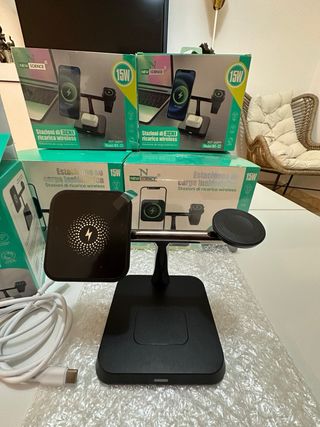 Cargadores Inalámbricos 3 en 1 para productos Apple: Apple Watch carga magnética inalámbrica con salida 3W iPhone carga magnética inalámbrica con salida 15W Airpods carga magnética inalámbrica con salida 5W SOLO ENVIOS POR CORREOS.