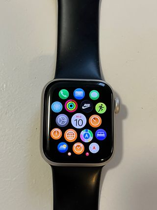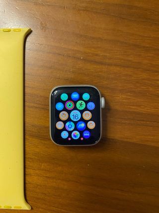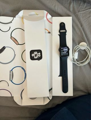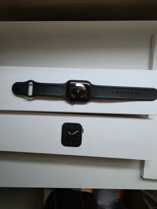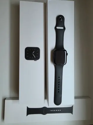 Caja perfecta sin ningún arañazo de 44 mm con GPS + Cell (datos), con caja, cargador y correa original a estrenar (además de la que se ve). Salud de la bateria 86%.