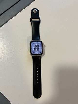 Apple Watch SE 2 40mm en color plata. Esta en buen estado, tiene algún signo de desgaste normal presente en las fotos. Lo doy con cargador y correa