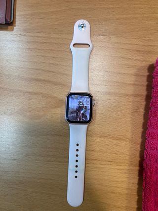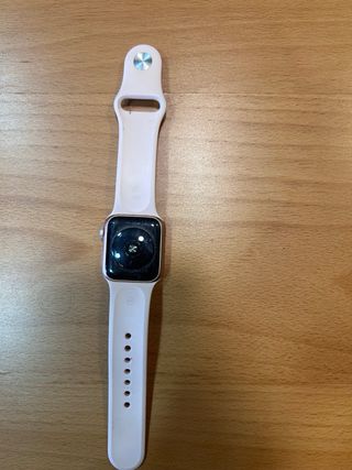 Reloj inteligente Apple Watch SE en color rosa y dorado. Un accesorio elegante y funcional. - Diseño moderno y ligero. - Correa de silicona suave. - Pantalla nítida y brillante. Se vende por falta de uso.Tiene unos pequeños arañazos en la pantalla, pero como se ve en la imagen, apenas se notan. Precio original: 245€. Precio negociable.