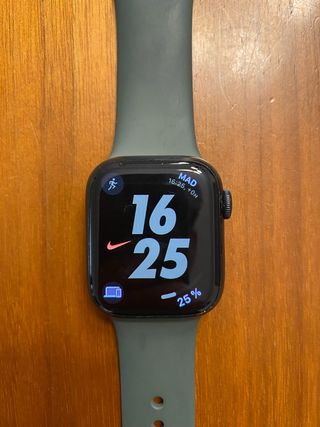 Reloj inteligente Apple Watch Series 3 en buen estado de funcionamiento. - Modelo: Series 3 - Color: Negro y plateado Vendo Apple watch que he usado a diario con cuidado. Aunque tiene desgaste del uso, se ve bien puesto. Funciona perfectamente. La batería está al 77% de capacidad máxima: me da dos días de autonomía normal y un día entero con uso más intensivo. Incluye: - Correa original de apple - 2 correas extra (distintos estilos) - Caja original completa No incluyo cargador, aunque es compatible con cualquier cargador magnético estándar de Apple Watch. Perfecto para quien quiera un Apple Watch funcional y económico
