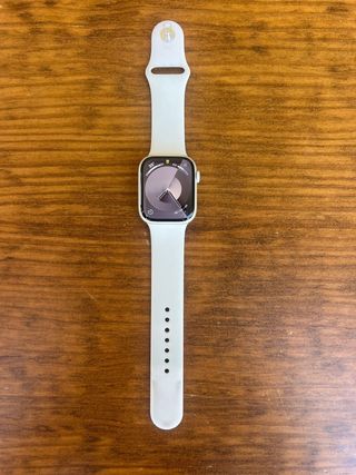 Reloj inteligente Apple Watch Series 9 en color plata y blanco. - Diseño elegante y moderno. - Correa de silicona cómoda. - Pantalla nítida y brillante.