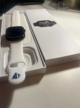 Apple watch 11,46 mm,gps,talla correa Ml,tambien tengo la correa Negra,todas originales sin nada de uso. Esta nuevo,no tiene ni un mes,impoluto,espectacular.solo se activo ya que uso un ultra y este ni se ausado. Lo doy con correa negra original y la de la fotontambien original