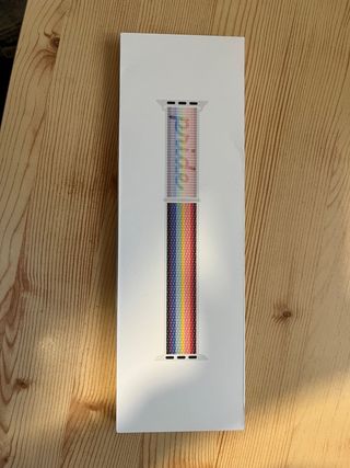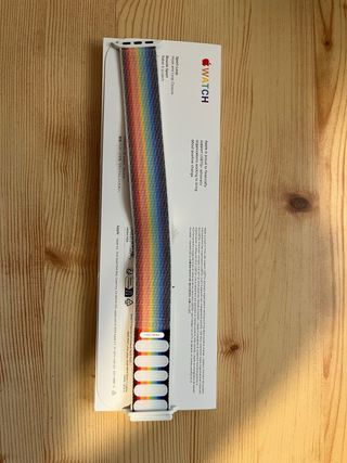Correa deportiva para Apple Watch Edición Orgullo. - Diseño tejido multicolor. - Cierre seguro y ajustable.