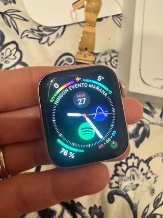 Reloj inteligente Apple Watch Serie 4 de 40mm en color oro rosa. El reloj sigue funcionando igual que el primer día, lo vendo porque me regalaron el serie 10. Incluye varias correas: - Correa rosa brillante. - Correa tejida color rosa. - Correa tejida multicolor. - Cargador magnético. Pregunta lo que quieras!