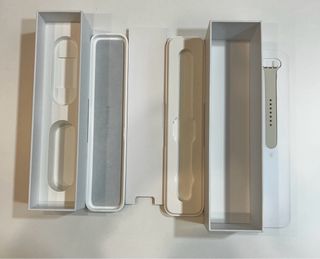 Caja de Apple Watch Sport de 38mm. - Caja de aluminio 7000 Series en color oro. - Pantalla Retina Ion-X Glass. - Parte trasera de composite. - Correa Sport en color Antique White. - Cierre de pin de acero inoxidable 316L en oro. Se incluye correa original poco usada en blanco
