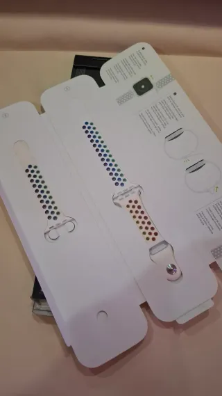 Correa de demostración en tienda, original y como nueva. Colaboración Apple X Nike. Descatalogada por Apple desde septiembre de 2018. Edición muy limitada. Color: Barely Rose/Pearl Pink (Rosa ligero y rosa perla). Talla: S/M. Válida para todos los relojes Apple Watch de 38-40-41mm. y para el Apple Watch Series 10/11 de 42mm. Envío en 24h laborables · Recibirás exactamente lo que ves en la foto · Descuento por compra de más de un artículo · Más correas y accesorios en mi perfil.