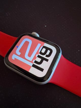 Reloj inteligente Apple Watch Nike Series 6. - Modelo GPS de 40 mm. - Caja de aluminio plateado. - Correa deportiva roja. -Salud de la bateria 84% - Incluye caja Muy cuidado como se puede observar en las imagenes. Evitar ofertas mareantes, regates, cambios y demás. No las respondo. Gente formal, por favor.