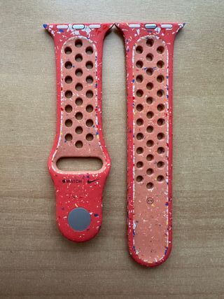 Correa original y precintada. Colaboración Apple X Nike. Descatalogada por Apple desde marzo de 2022. Color: Brasa mágica y carmesí pálido. Tallas: S/M y M/L. Válida para todos los Apple Watch de 38-40-41-42mm. Envío en 24h laborables · Recibirás exactamente lo que ves en la foto · Descuento por compra de más de un artículo · Más correas y accesorios en mi perfil.