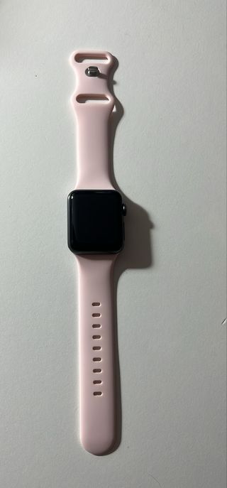 Apple Watch Series 3 con caja de 38mm y correa deportiva rosa. - Caja de aluminio negro. - Correa de silicona rosa. - Pantalla Retina. va con su caja sin cargador. estado de la baeria 89 %