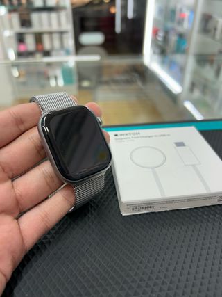 En estado impecable, sin un solo arañazo, siempre usado con protector de pantalla. Incluye correa deportiva Nike original negra, cargador rápido original y caja original. Batería al 86 %, funciona perfectamente, casi como nuevo.