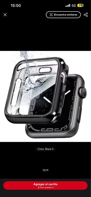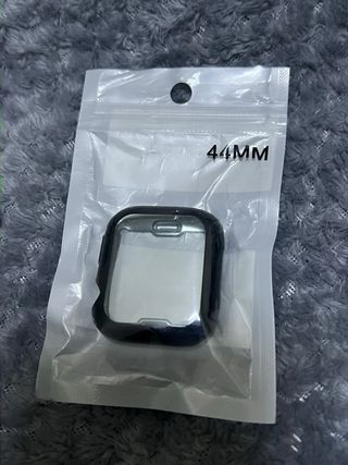Funda protectora para Apple Watch de 44mm, color negro. - Diseño transparente con borde negro. - Protege tu reloj de golpes y arañazos. - Fácil de instalar y quitar.