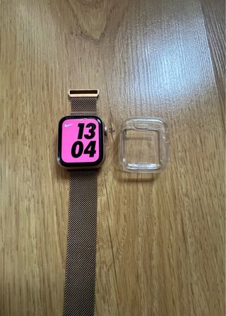 Apple Watch Series 6 en color oro rosa con correa milanesa. Regalo cargador a estrenar! - Caja de aluminio. - Pantalla Retina. - Incluye protector de pantalla transparente. - Correa ajustable con imán Milanese Loop dorada - iOS 26 última actualización - Muchas funciones y apps - Pantalla con signos de uso