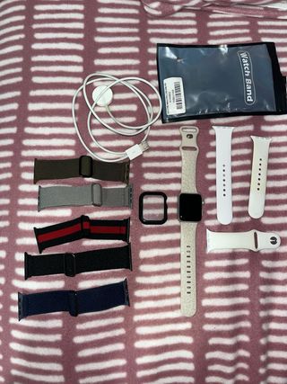 Pack Apple Watch S7 Completo y Cuidado! Vendo mi Apple Watch Series 7 por cambio de modelo/falta de uso. Ha sido cuidado por un entusiasta de la tecnología, por lo que funciona como el primer día. ¿Qué incluye el precio? ⌚ Apple Watch Series 7: Caja de aluminio, poco uso y pantalla sin rasguños. 🎨 KIT DE ESTILO: Incluyo 5 correas en total (ver foto real) en tonos Azul Navy, Burdeos, Crema, Verde Bosque y Negro. Perfectas para cambiar según la ropa o la ocasión. 📦 Todo original: Entrego con su caja intacta y el cable de carga rápida magnética original. Estado técnico: Muy bueno