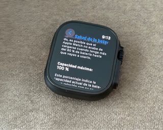 Reloj inteligente Apple Watch Ultra 2 en color negro. En perfecto estado y con factura de compra. Garantía y factura - Capacidad máxima de batería: 100%. - Indicador de porcentaje de batería actual en relación con su capacidad original.