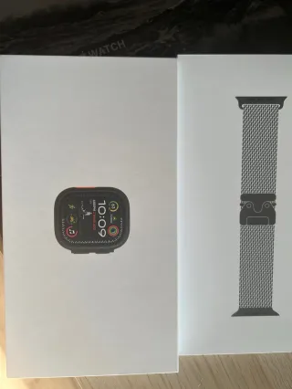Reloj inteligente Apple Watch Ultra 2 con acabado en gris y plata. - Diseño moderno y elegante. - Correa de malla metálica. - Caja de titanio. La pantalla está en perfecto estado, ni un solo rasguño gracias al cristal de cuarzo. Comprado en el Apple Store septiembre de 2023, tengo el boleto. Hay dos años de garantía, por supuesto. Se vende sin caja. Todo funciona perfectamente. Todo es original se Apple. Incluido Apple Pulsera Milanese Loop en titanio natural (49 mm) - Talla M de Nov 24 . Por nuevo 200 € Solo reloj: 420 € Sooo correa: 70 €