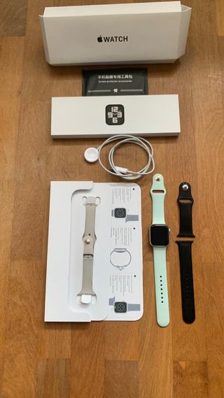 Apple Watch SE con correas intercambiables en caja ORIGINAL Modelo: A2351 Tiene ligeras marcas de uso en el cristal pero funciona como el primer día, no ha tenido ninguna caída No incluye correa original pero se envía con: - Correa de cuero marrón. - Correa de eslabones de acero inoxidable plateada. - Correa deportiva de tela gris. - Correa deportiva Nike gris. - Correa de malla milanesa plateada. - Correa deportiva negra. - Cargador magnético.