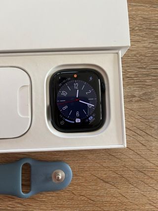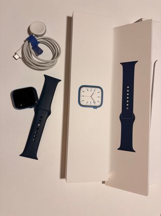 El reloj está en excelente estado, muy cuidado y funcionando a la perfección. Es el modelo con pantalla siempre activa y carga rápida. Incluye: • ⌚ Apple Watch Series 7 (41mm) original. • 📦 Caja original completa (tanto la del reloj como la de la correa). • 🔌 Cable de carga rápida original (conector USB-C). • 🔹 Correa deportiva original en color Azul Abismo.