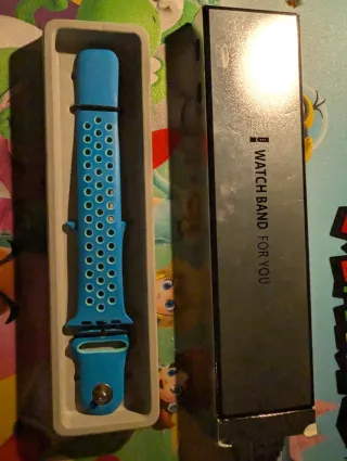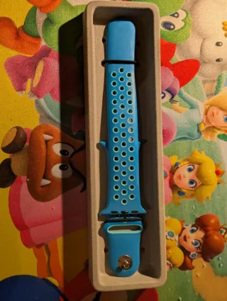 50 euros el lote de 2(mitad de precio) o 30e cada correa. Correa 1: deportiva Nike para Apple Watch de 44-45 mm. Diseñada para un ajuste cómodo y seguro. - Material duradero y flexible. - Cierre de pinza y trabilla. correa 2: original Apple watch negra/azul