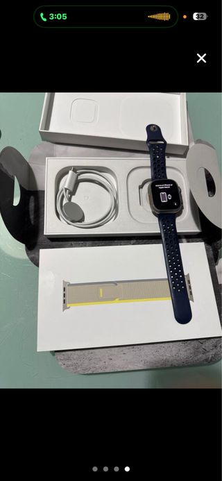 Se vende Apple Watch Series 9 GPS Aluminum Nike Edition de 45mm como nuevo. Ha tenido muy poco uso. Se entrega con 2 pulseras adicionales, una de Spigen y la otra casual. - Edición especial Nike. - Color plateado y blanco.