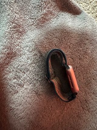 Vendo precioso Apple Watch SE (GPS + Celular). La caja es de aluminio dorada y trae una correa de nailon naranja y beige, de aspecto impecable. - Incluye caja y correa. - Modelo GPS + Celular.