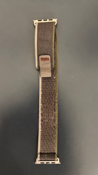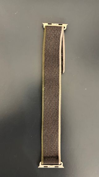 Correa de tejido resistente para Apple Watch. - Cierre de velcro para un ajuste fácil. - Diseño de rayas en azul y negro. comprada en mayo de 2025