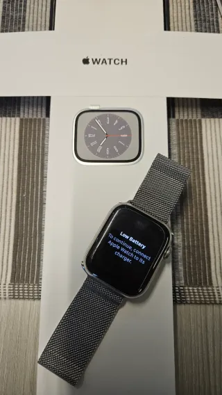 Reloj inteligente Apple Watch Series 8 de 45mm. Lo vendo porque ya no lo uso. - Caja de aluminio en color gris. - Correa de acero inoxidable en color plata. - Incluye cargador magnético. Salud batería: 83%. Conserva todas sus cajas.