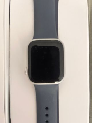 Reloj inteligente Apple Watch Series 6 en color azul marino. Un dispositivo reacondicionado con un diseño elegante. Está en perfecto estado funcional, pero presenta algunas rayadas en la pantalla que se pueden ver a contraluz.