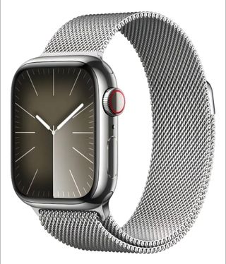 Reloj inteligente Apple Watch Series 9 con conectividad GPS y celular. - Caja de acero inoxidable. - Correa de malla milanesa plateada. 45mm Aún con garantía de Apple. 100% de condición de batería.