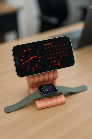 Especificaciones Técnicas Dimensiones: Base de 7,5 x 12,5 cm con una altura de 10 cm. Compatibilidad Total: Diseñado para todas las series de Apple Watch, incluyendo los modelos SE y Ultra y Magsafe de cable tranzado Material de Alta Calidad: Impreso en 3D con filamento PLA, lo que garantiza una pieza robusta y de larga vida útil. Soporte de carga em diseño único, con diseño minimalista y moderno. Mantenga la organizacion del local de carga despejado, ocultando los cable de la vista. Producto de color personalizable Atención: El cargador magnético oficial de Apple NO está incluido.