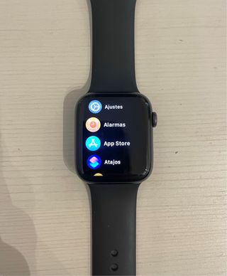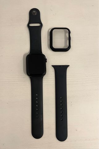 Reloj inteligente Apple Watch SE de 44 mm en color negro. Funcionamiento perfecto. Siempre ha llevado protector de pantalla. Incluye protector de pantalla y correa adicional. - Modelo: Watch SE - Conectividad: GPS - Tamaño: 44 mm - Color: Negro espacial - Incluye cargador - Incluye protector de pantalla - Incluye correa adicional