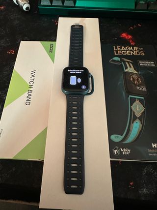 Vendo Apple Watch Series 7 de 45mm (GPS) en el elegante color Azul Medianoche (Midnight). El reloj está en buen estado, funcionando perfectamente y con salud de la batería a 74%. La pantalla de 45mm es ideal para ver notificaciones y métricas deportivas con total claridad. Se incluye el cable de carga magnética y tres correas (no Apple): - Dos correas de silicona con cierre magnético, muy cómodas y fáciles de ajustar. - Una correa exclusiva Sculpted 3D Hextech Magic League of Legends (nueva). #AppleWatch #AppleWatchS7 #MidnightBlue #Smartwatch #LeagueOfLegends #CorreasAppleWatch #Tecnologia #LoL
