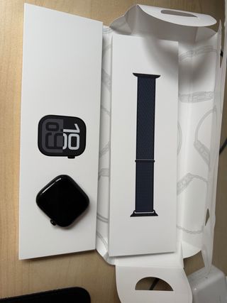 Reloj Apple Watch Series 10 de 44 mm en color gris espacial. - El cristal tiene una pequeña marca en el lateral, fruto de una caída, que no afecta al funcionamiento. -98% salud de batería. - No negociable.
