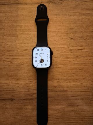 Vendo Apple Watch S10 de 42mm en color negro. Se incluye una correa deportiva negra. El reloj y la correa están en excelentes condiciones. Escucho Ofertas Ciudad Real - Correa deportiva de silicona. - Tamaño de caja: 42mm