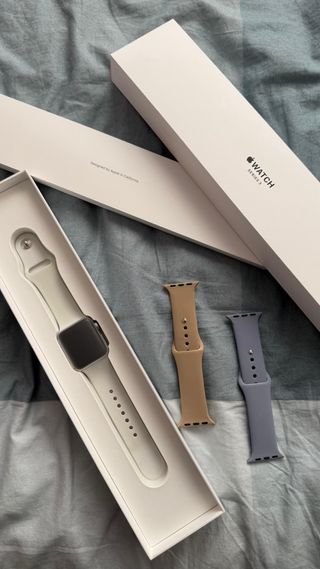 Se vende Apple Watch serie 3, tiene pequeños toques en la pantalla del uso pero funciona perfectamente y dura la bateria un dia entero. Se incluye cable de carga y varias correas pero no lleva caja