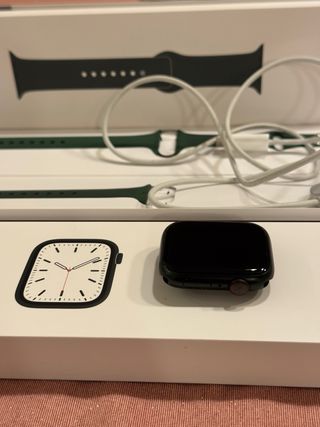 Apple Watch Series 7 GPS + Cellular de 45mm en color verde. Incluye dos correas de color verde. -salud de batería 🔋81% - Modelo: Series 7 GPS + Cellular 45mm - Color de la caja: verde - Color de la correa: Verde -incluye caja, cargador y correa original